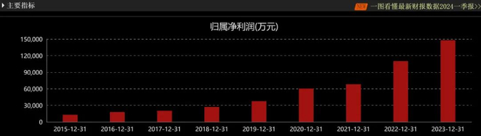 即使在2022年、2023年股价分别下跌5%、35%的年份,公司净利润依然持续增长。