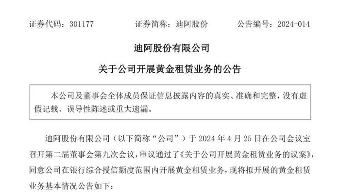 2022年起,国内消费环境低迷、克拉钻石价格持续走低下滑、社会结婚意愿不断降低。再加上具备避险属性的黄金价格不断上涨、黄金首饰需求强劲,受此影响,2023年迪阿股份开始推出黄金饰品,但目前占公司整体销售占比还比较小,还在打磨过程中。