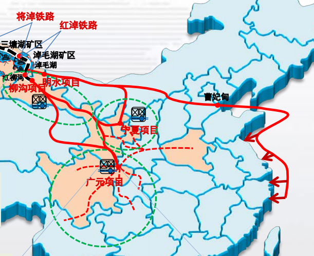 物流基地:广汇物流布局广元、柳沟、宁夏、明水四大能源物流基地,实现了能源物流业务延伸,是实施“一条铁路和四大基地”战略的重大举措。战略布局通过在资源紧缺地区布局储运基地从而将新疆优势能源产品尤其是煤炭产品进行销售前移,将其作为煤炭产品销售的前置仓;通过淡储旺用进行煤炭战略储备,调节季节差异带来的市场需求;通过“点对点”运输,提高铁路运输效率,提升疆煤外运量,增强疆煤在终端市场的竞争力;将运营的综合能源物流基地编织成网,充分发挥基地的节点辐射效应,相互之间形成物流支撑,提高能源物流的响应效率,扩大终端市场份额,夯实广汇物流主业发展基础,增厚能源物流收益。