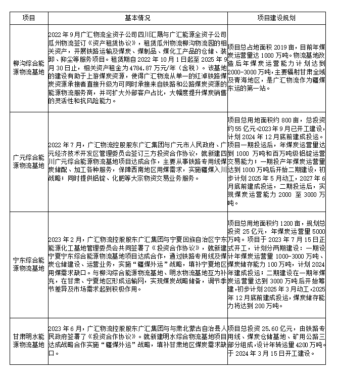 表2:广汇物流四大综合能源物流基地规划及建设梳理