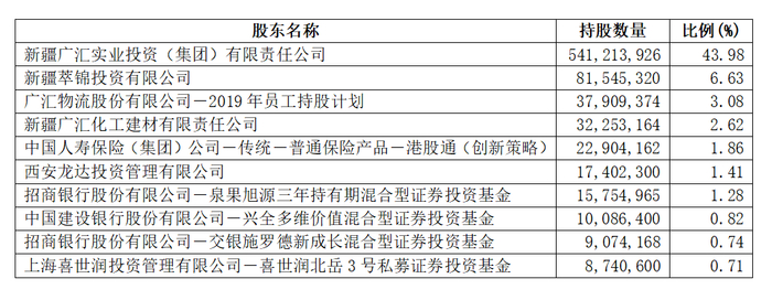 广汇物流作为广汇集团旗下上市公司之一(截至2023年年报,公司第一大股东为广汇集团,持股比例43.98%),广汇集团作为新疆本土“世界500强”企业,已形成“能源开发、汽车服务、现代物流、房产置业”四大产业板块并进格局,旗下上市公司拥有哈密淖毛湖矿区丰富的煤炭资源,广汇物流具备能源产业资源协同优势。多家公募基金及险资持续关注广汇物流,公司年报披露前十大股东有中国人寿保险、泉果基金、兴证全球基金、交易施罗德基金、喜世润基金等多家机构。