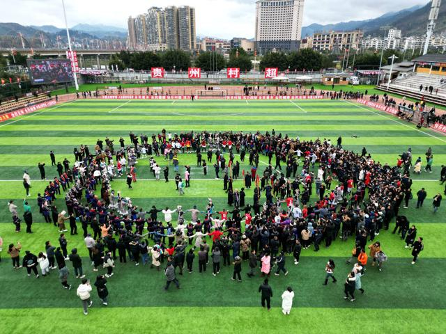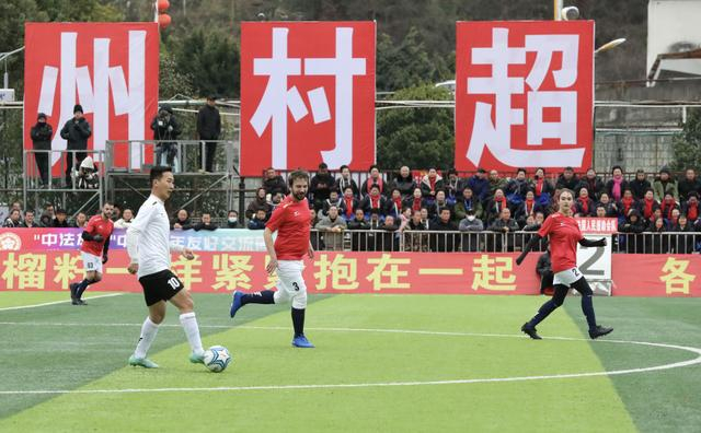 今年春天贵州省黔东南苗族侗族自治州一场国际足球友谊赛在大山里上演火遍全网的榕江县“村超”赛场上贵州“村超”联队对阵法国青年代表队