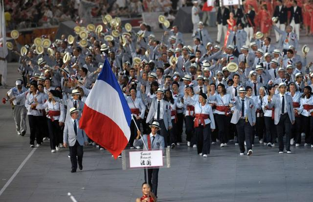 ↑2008年8月8日,法国奥运代表团在北京奥运会开幕式上入场。