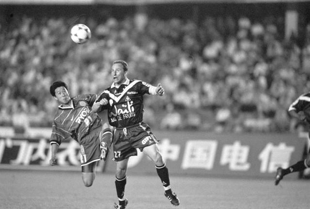 ↑1998年5月20日,98中法足球对抗赛在北京工人体育场举行。北京国安队2比3不敌来访的法国波尔多队。