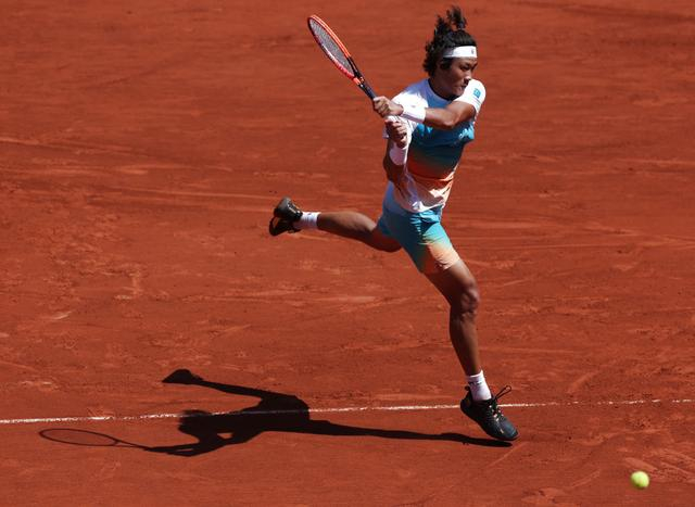 ↑2023年6月3日,张之臻在2023法国网球公开赛男子单打第三轮比赛中。