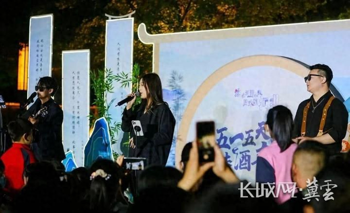 4月30日晚,石家庄古栾水镇霓虹闪烁、人头攒动,众多市民和游客齐聚这里,奔赴一场“美食+娱乐+购物”之约。当晚,以“三苏祖籍·‘音’你而来”为主题的古栾水镇第二届诗酒音乐季启幕。