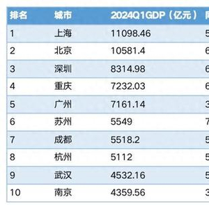 一季度GDP十强城市出炉!