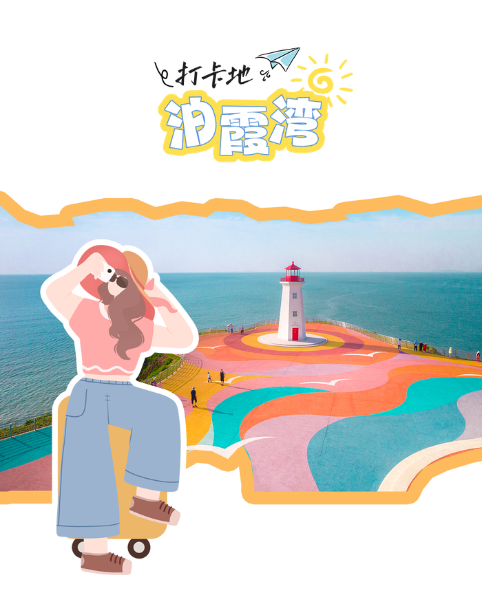 每一个季节的泊霞湾,都有专属的景致。春季的泊霞湾,告别冰封,精心设计的彩绘路面和海鸥图案变得格外活泼灵动。红白相间的灯塔矗立在海岸旁,色彩斑斓的层叠“海浪”,与山崖下的大海形成完美构图。