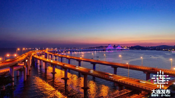 夜幕降临,是星海湾大桥的高光时刻,桥上灯光璀璨、车流穿梭,你可以在大桥上看风景,而大桥也是风景。有人说,如果星海湾大桥也有“花语”,那一定是“所爱隔山海,山海皆可平”。