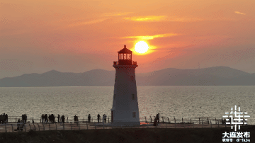 傍晚落日时分,整个海面都被染成了金色,落日点亮了灯塔,渐渐坠入大海深处。原来这里,才是大连最美的“橘子海”。