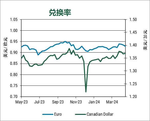 周五,美元兑日元跌至三周低点,此前数据显示,美国4月份就业增长放缓幅度超过预期,年工资涨幅降温,从而推高了对美联储今年将降息两次的预期。美元指数本周收于105.08。