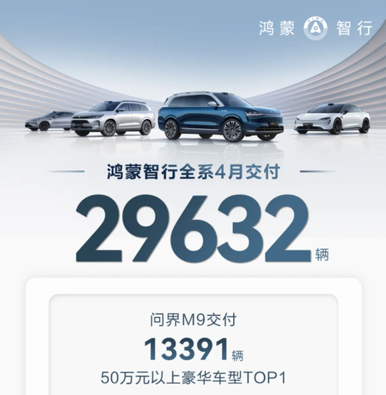 其中,问界M9 4月交付新车13391辆,累计大定超7万辆。