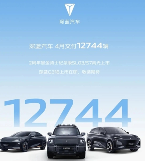 4月份,深蓝汽车完成了12744辆的交付量,成为长安汽车旗下的一大亮点。