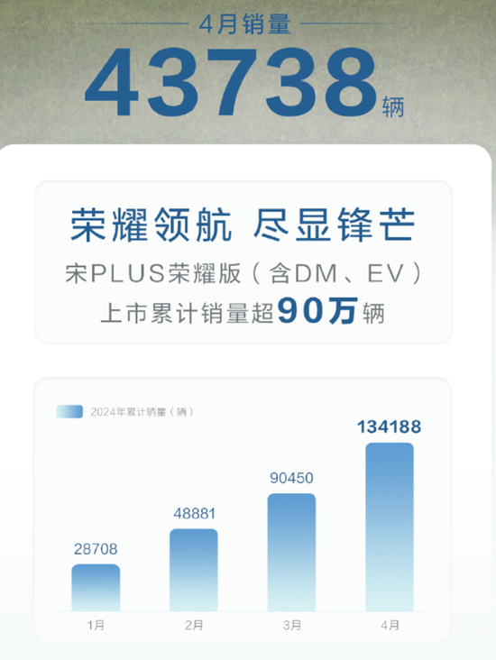 宋PLUS荣耀版4月热销43738辆,刷新自主新能源SUV价值标杆。