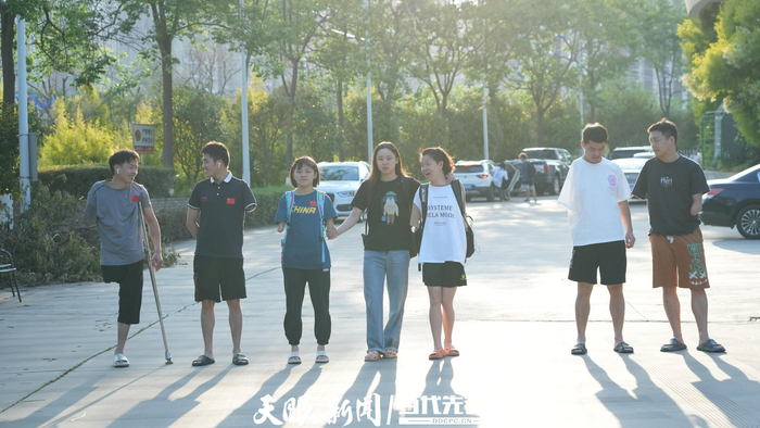 ▲从左到右依次为中国残疾人游泳队贵州籍运动员:杨光龙、伍洪良、刘道敏、蔡丽雯、何聖羔、罗锦彪、杨洪。图为他们结束训练准备回宿舍休息。贵州日报天眼新闻记者 陈祖嘉 摄
