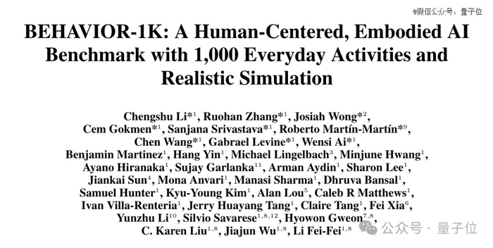 比如上个月发布的一项涉及1000多种人类日常活动的具身智能Benchmark,李飞飞就有参与其中。
