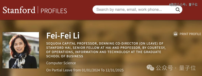 另外,李飞飞的斯坦福主页显示从今年年初到2025年末,她将处于“部分休假”状态。