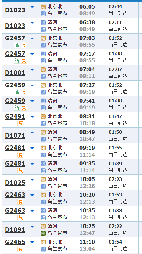 目的地选择:呼和浩特或乌兰察布