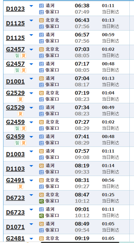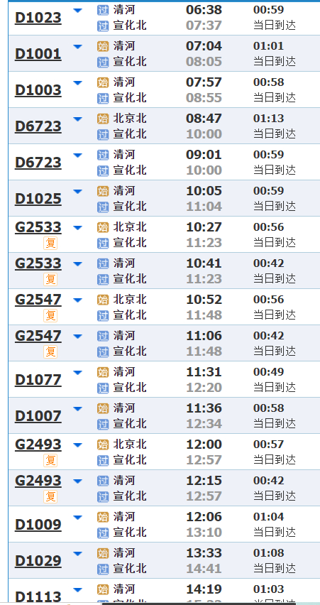 东花园北站、怀来站……