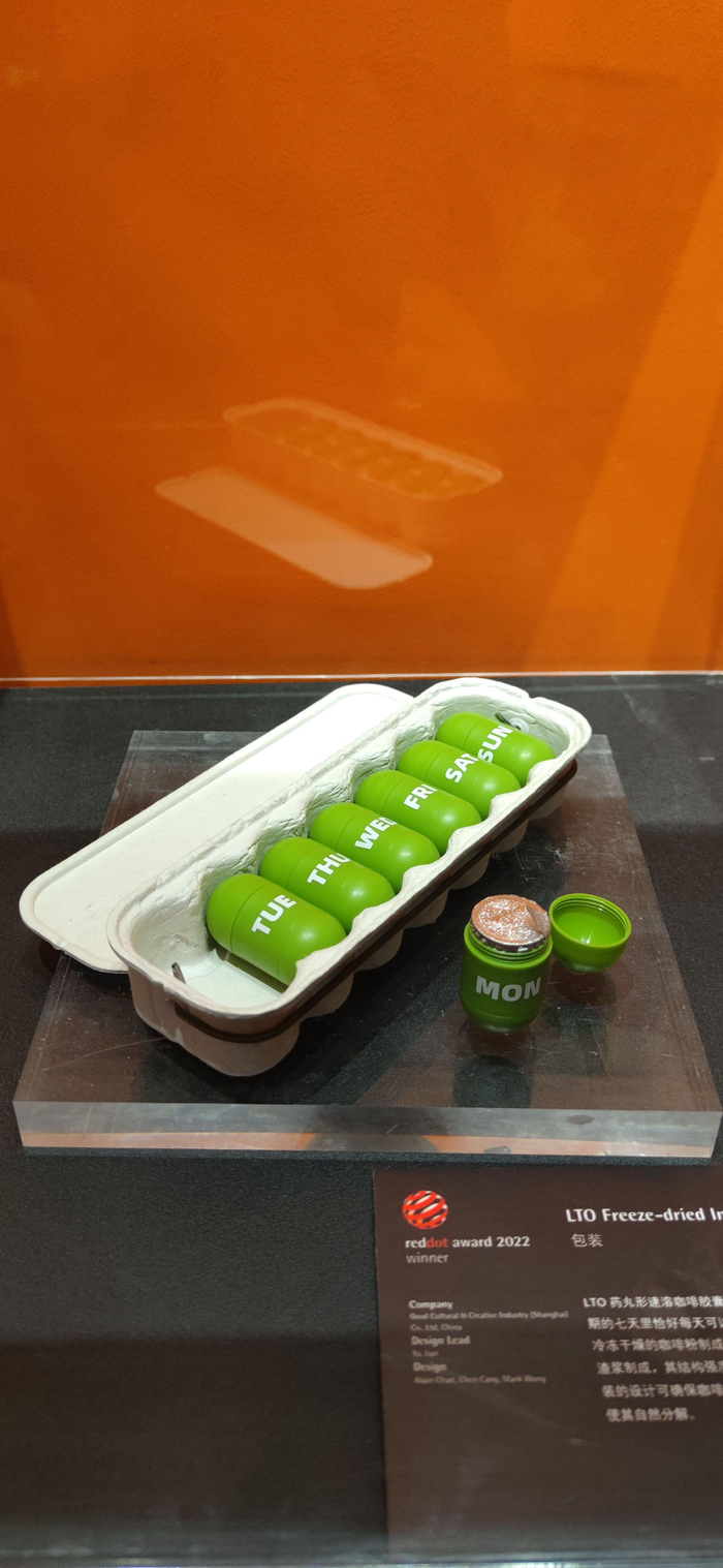 “LTO”想必是都市白领的最爱。它的全称是“药丸形速溶咖啡胶囊”,一盒七粒均由PP和2g冷冻干燥的咖啡粉制成,外层有密封铝保护,包装由回收的报纸和50%甘蔗渣浆制成,可直接埋进土里自然分解。