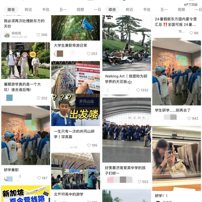 在小红书上,不乏一些家长对研学体验的吐槽声,例如北大清华研学游只在校门口拍照、入校名额需额外加价获取、货不对板等。更有家长质疑,研学旅行正在已经变成一门价格与质量不对等的旅游生意。