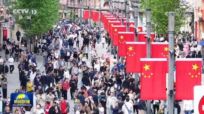 这个假期,各大旅游景区人气旺。北京颐和园日均客流量超过了15万人次,游客泛舟湖上、漫步景区,尽享古典园林之美。山东泰山成为全国自驾游热门景点之一,每天约有8万多游客登顶泰山,观日出、赏美景。“五一”假期,位于福州马尾区的中国船政文化城迎来大批参观游客,这是我国保存最好、体系最完整的近代工业文化遗产,保留了大量法国建筑和工业设计。 在吉林长春,净月潭国家森林公园游人如织,人们走进大自然,驻足聆听森林音乐会,打卡非遗市集。假日里,辽宁千山、广西桂林象鼻山、杭州西湖景区客流增长明显,当地通过完善公交换乘体系、增加预约途径等方式方便游客出行。这个假期,民俗游、休闲游,让人们的假期生活丰富多彩。在云南德宏,数万名游客和当地群众一同跳起民族舞蹈,欢快热闹。在新疆赛里木湖,游客们欣赏自然风光的同时,还能观看精彩纷呈的非遗展演,品尝特色美食。在海南三亚,人们享受碧海蓝天、椰林树影,体验活力四射的水上项目。在陕西汉中,人们在汉江扬帆起航,感受帆船运动的速度与激情。在江苏扬州,人们欣赏扬州清曲、杖头木偶等非遗表演,体验鸭蛋粉制作。贵州黔南州三都水族自治县,举办了具有水族特色的赛马会、马术特技表演、骑马体验等项目,“五一”期间已吸引了近20万名游客。 这个假期,各大城市商圈、步行街,消费新场景聚人气。上海南京路步行街,单日累计客流超22万人次,同比去年上升36.3%,刚刚开门迎客的进博集市吸引众多游客前来选购全球好物。在天津和平区五大道,假日期间举办了咖啡市集,让游客多了份休闲惬意。在重庆,人们白天漫步山城巷、十八梯传统风貌区,收集城市印章,挑选文创产品。夜晚,看洪崖洞吊脚楼群璨若宫阙,赏美景品美食,打卡山城夜景。这个假期,夜色缤纷、让人流连忘返。在哈尔滨松花江畔,不同主题的灯光秀让游客感受迷人的城市魅力。在甘肃临夏的八坊十三巷,西北民族文化建筑群被华灯点缀,游客置身其中观看实景演出,体验风土人情,日均游客接待量超过5万人次。