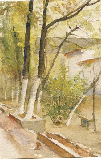 后来,胡老师让我们画石膏像的素描,继而对景写生,其间细致示范画法,及时纠正错误。他还让我们独立画一些构图,在此基础上自由创作。在胡老师的指导下,凡是与画画有关的事我都喜欢,我也认识到画画是有一定规矩的,要循规蹈矩画写生、画构图。