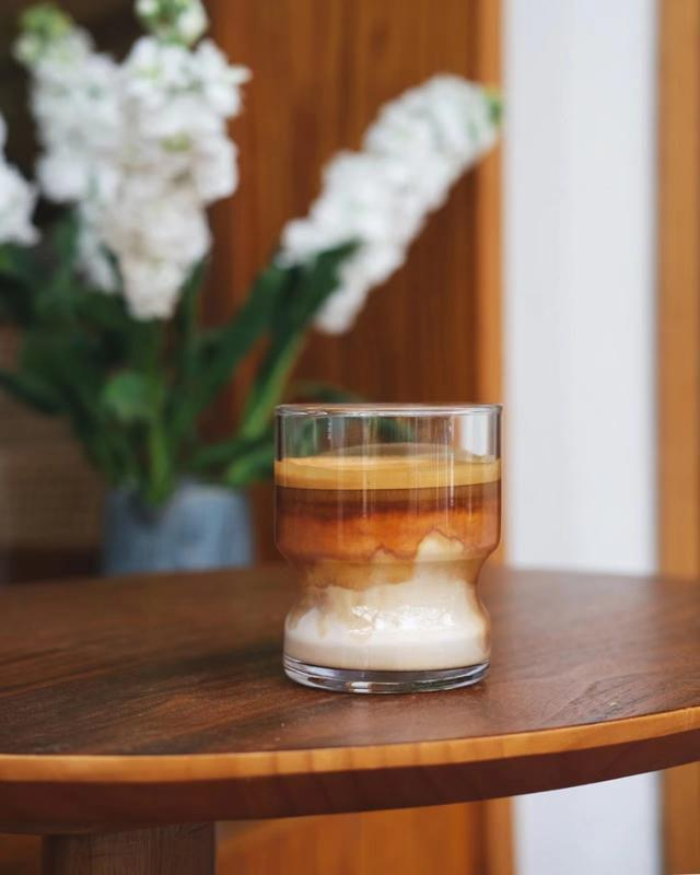 “早春得体”将上海春日玉兰花香和龙眼花蜜融入咖啡。清雅内敛的玉兰花干浸泡在牛奶里,用花蜜调味,新鲜萃取的浓缩咖啡注入其中,暗香浮动,为这杯dirty多添了分春日意境。