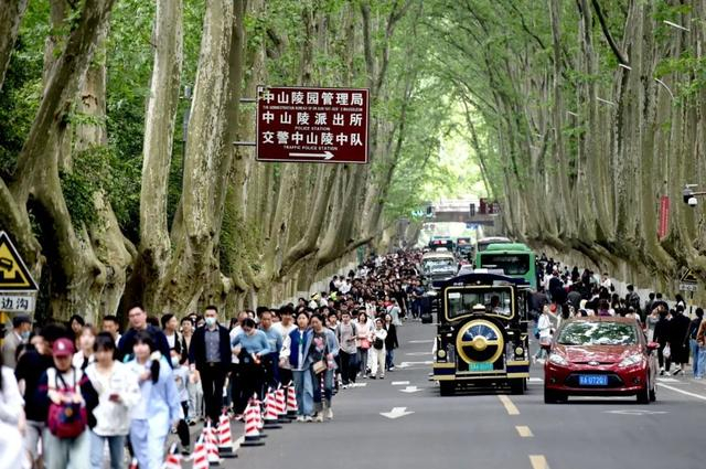 2024年5月3日,南京钟山风景区迎来大批游客,景区在原有接驳力量基础上,临时增加接驳车,配合交管部门,优化调配线路,延长接驳车工作时间,提高接驳车运营效率。吴俊摄