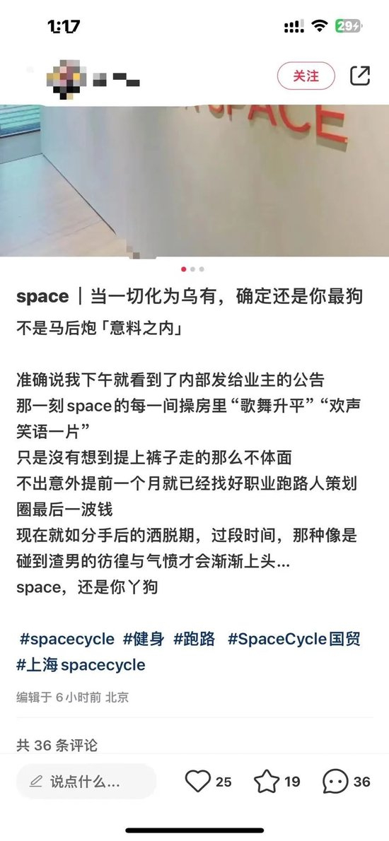 据蓝鲸新闻报道,和不少传统健身房跑路有迹可循不同,Space的闭店堪称“断崖式闭店”。