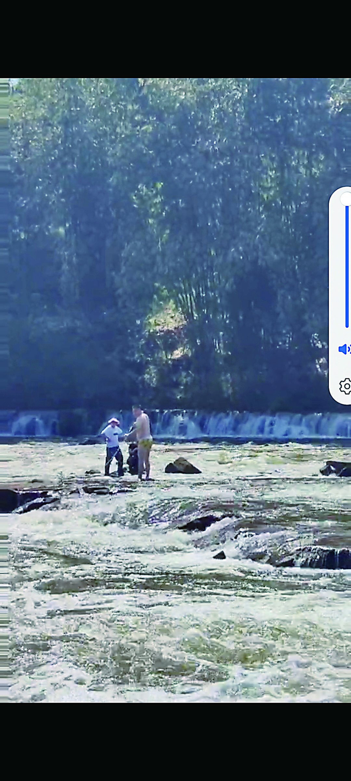 上岸已来不及了,两人只得快速向河中间一个高点奔跑,爬上一块石头,大声呼救。