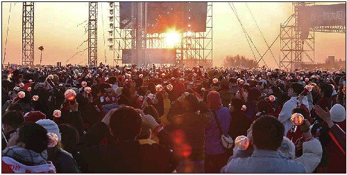 天气预报显示,烟台当天有雾,但是太阳最终穿破薄雾,灿烂升起,温暖了每位歌迷。