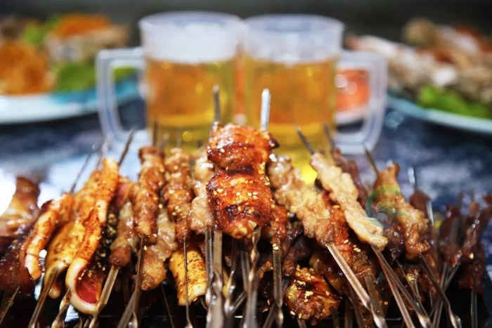 这儿是肉食者的狂欢夜,有饱满劲道的肉串滋滋冒着油花,有洒了蒜蓉粉丝的烤牡蛎鲜香十足、有火红麻辣的小龙虾让人一口一个停不下来,还有鸡翅包饭、烤猪蹄、烤脑花……