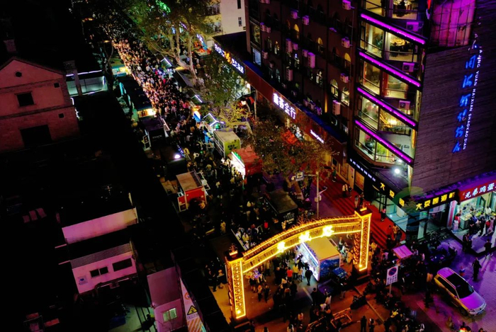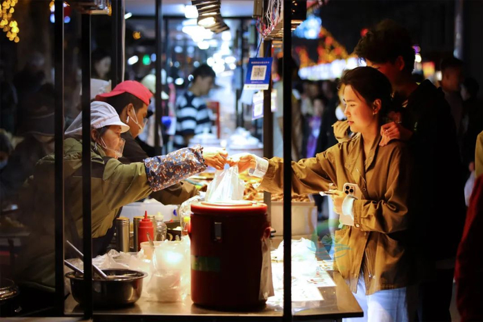 摊位沿街两侧有序排开,炉火与灯光依次点亮,穿过来来往往觅食的人群,循着飘散的香味,便能开启酣畅淋漓的舌尖盛宴。