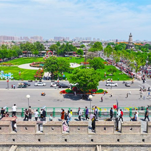 5月1日,游客们在正定南城门景区游玩。 河北日报记者 史晟全摄