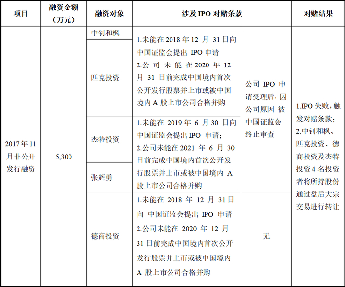 实际情况很可能也确实如此,发行人在此次申报北交所前曾经历两次融资。蹊跷的是,两次融资都牵涉到了有关IPO的对赌条款,具体情况如下: