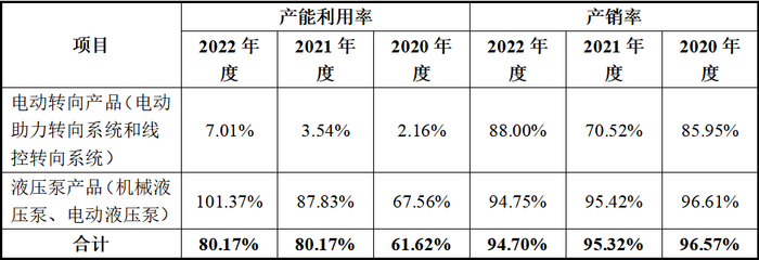 如上表,发行人报告期内虽然开发了适用于新能源汽车的电动转向产品,但无论是生产端还是销售端,表现均有些惨淡。生产方面,电动转向产品的产能利用率报告期各年度分别只有2.16%、3.54%、7.01%,几乎处于停产状态。不仅如此,电动转向产品的销售成功率也非常一般。报告期内该款产品占各年度营收比例分别只有1.64%、1.67%、3.66%,在销售规模几乎可以忽略不计的情况下,产销率仍然分别只有85.95%、70.52%、88.00%。很明显,发行人目前开发的电动转向产品并没有得到市场认可,在相当长的一段时间内仍然不得不依赖液压泵产品维持生计。