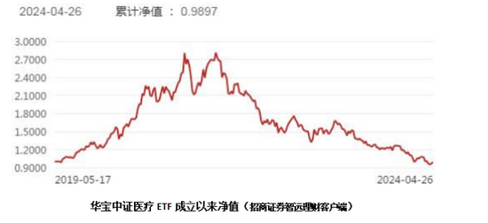 那么华宝基金重点布局的指数基金表现如何?iFinD显示华宝基金在管规模最大的是华宝中证医疗ETF,现有规模223.6亿元,2019年5月成立。当时生物医药健康板块表现火热,但2021年起医药板块进入持续至今的大熊市,华宝中证医疗ETF净值从2021年6月的2.8668(除权)跌至目前只有0.9897,iFinD显示最近三年、最近一年、最近六个月的排名均低于大多数可比基金,堪称垫底。