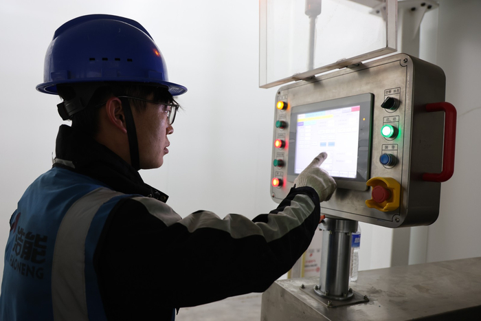 位于市高新区的邢东锂电12GW高性能锂离子储能电池项目现场,工作人员正在调试设备。