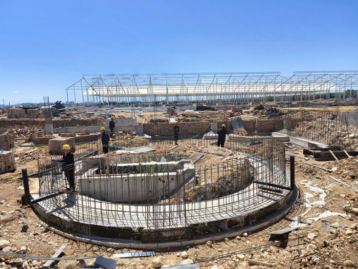 德玉泉乳业生态智慧娟姗牧场项目挤奶厅建设现场。