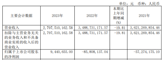 挖贝网5月6日,华纺股份 近日发布2023年年度报告,报告期内公司实现营业收入2,797,510,162.58元,同比下滑19.81%;归属于上市公司股东的净利润9,440,655.00元,较上年同期扭亏为盈。