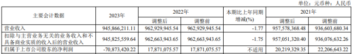 挖贝网5月6日,新智认知 近日发布2023年年度报告,报告期内公司实现营业收入945,866,211.11元,同比下滑1.77%;归属于上市公司股东的净利润-70,873,420.22元,较上年同期由盈转亏。