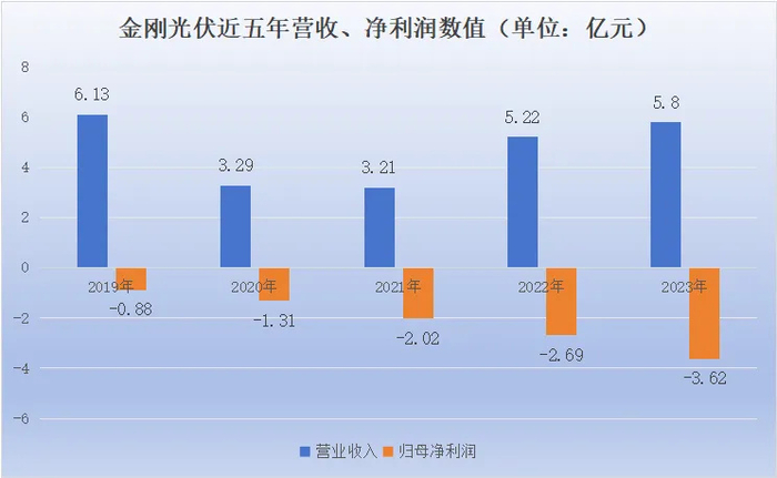值得一提的是,金刚光伏业绩已连续5年陷入亏损的“窘境”且规模逐年扩大。