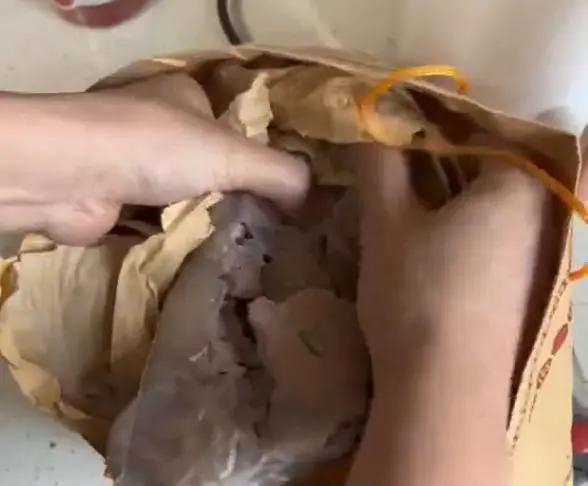 日前,一名女子在网络发布视频称,5月1日下午,该女子和家人前往杭州市旅游,在河坊街一家店铺购买了三只叫花鸡,其中一只当场打开并食用,另外两只带回了家。回到家后,博主打开了另外一只鸡,但发现只有土、没有鸡,于是在打开最后一只叫花鸡的同时录制视频,结果发现,最后一只也没有鸡。