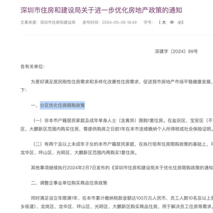 5月6日傍晚,深圳市住房和建设局发布《关于进一步优化房地产政策的通知》(下称“《通知》”)。《通知》明确分区优化住房限购政策。
