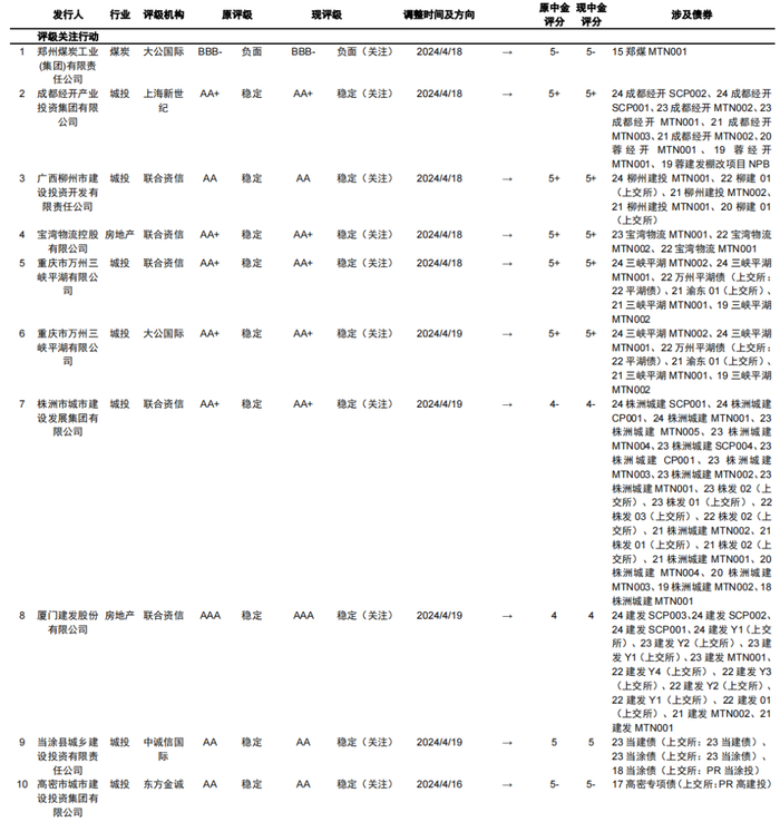 【中金固收·信用】中国信用债评级调整周报