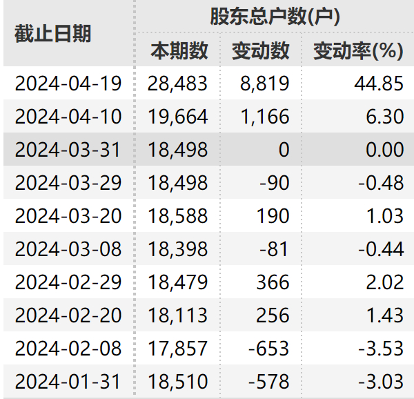Wind数据显示,截至4月19日,公司总股东数较4月10日增加8819户。