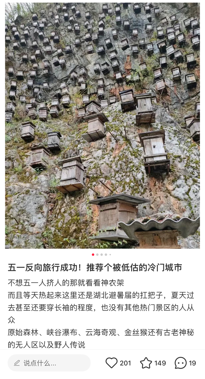“五一神农架反向旅行成功……等天热起来这里还是湖北避暑界的扛把子……也没有其他景区的人从众……”有游客在社交平台分享道。