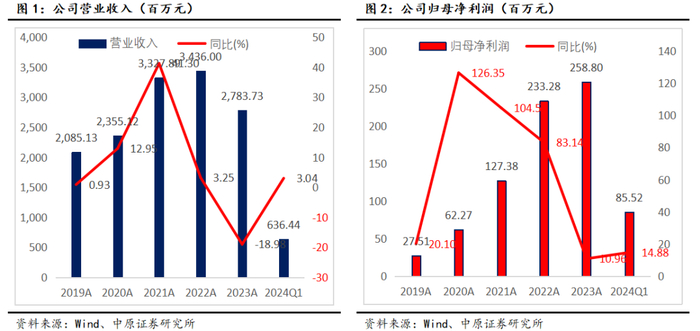 2024年第一季度公司实现营业收入为6.36亿元,同比增长3.04%;归母净利润8552.37万元,同比增长14.88%。