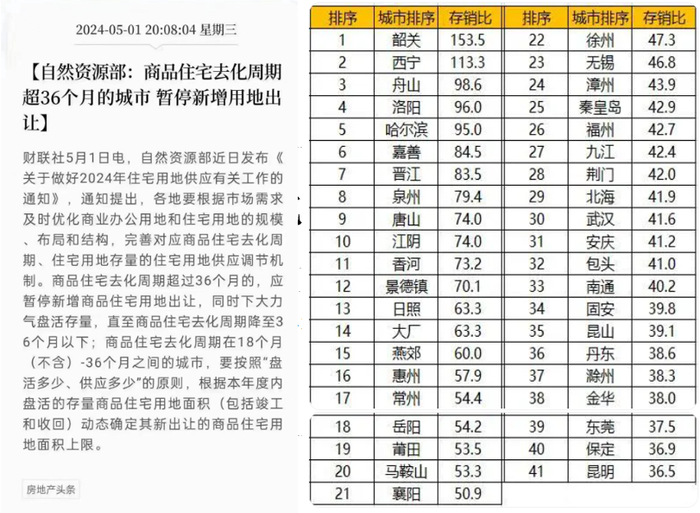 然而,自然资源部去化周期超过36个月的城市暂停供地出来,供应大缩水已经不算什么,毕竟有些城市未来无法供地。